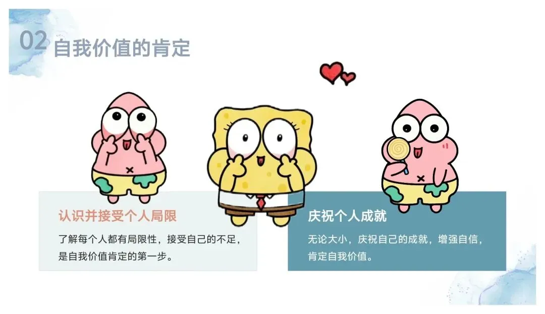 一方面,我们要正视并接受自己的个人局限,这是肯定自我价值的第一步;另一方面,无论成就大小,都要学会庆祝自己的每一次收获,哪怕只是完成了一件小事,也能从中增强自信,肯定自我价值。