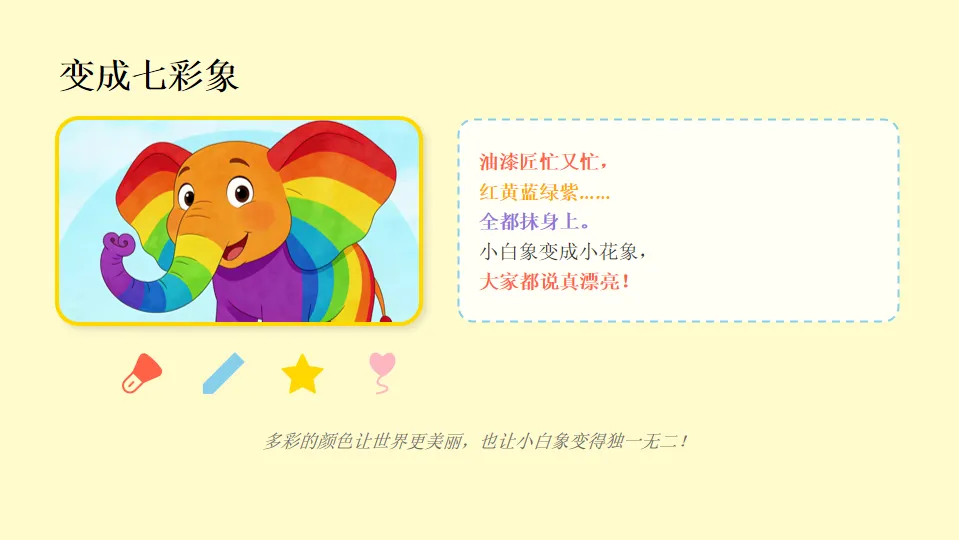 幼儿园小班语言《七彩象》活动教学课件展示