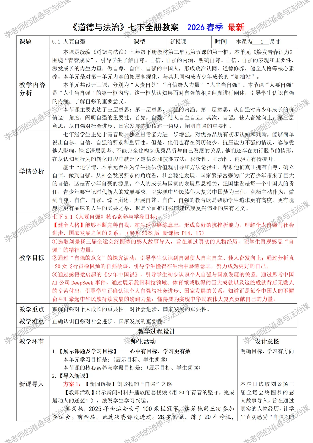 编者的话:李老师将连载2026春季《道德与法治》各年级的精品备课和学习资料。本资料为李老师原创,未经允许,禁止转载!