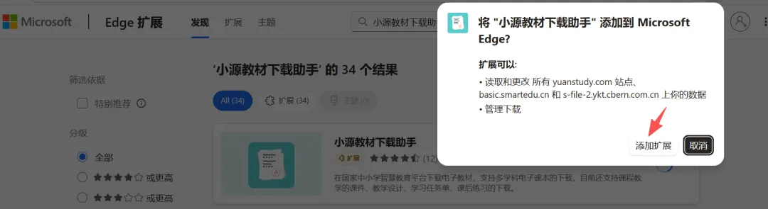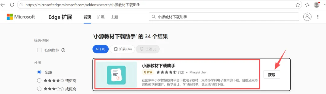搜索之后找到如下截图的插件,点击“获取”,并在弹出的对话框中选择“添加扩展”。