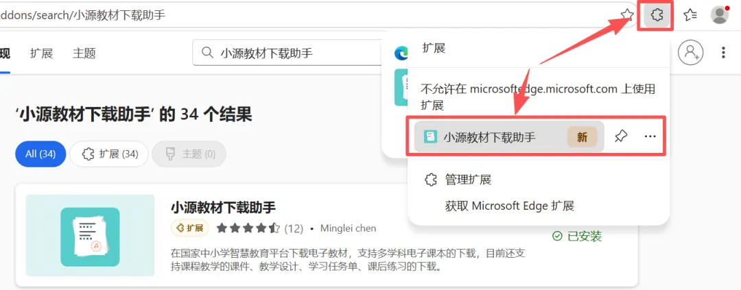 此时可以看到插件已经被安装在Edge里了。