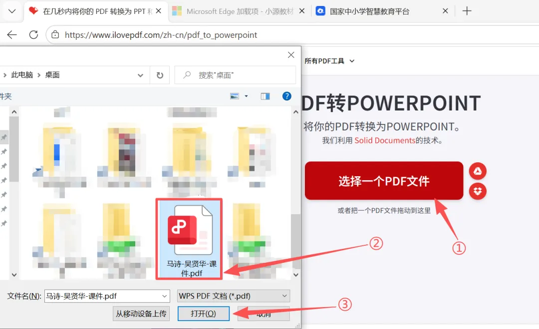 点击“选择一个PDF文件”-选择刚才下载下来的PDF课件并“打开”。