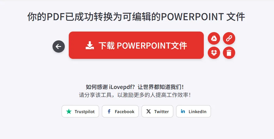 点击转换至PPTX,等待大概几十秒即可完成转换。