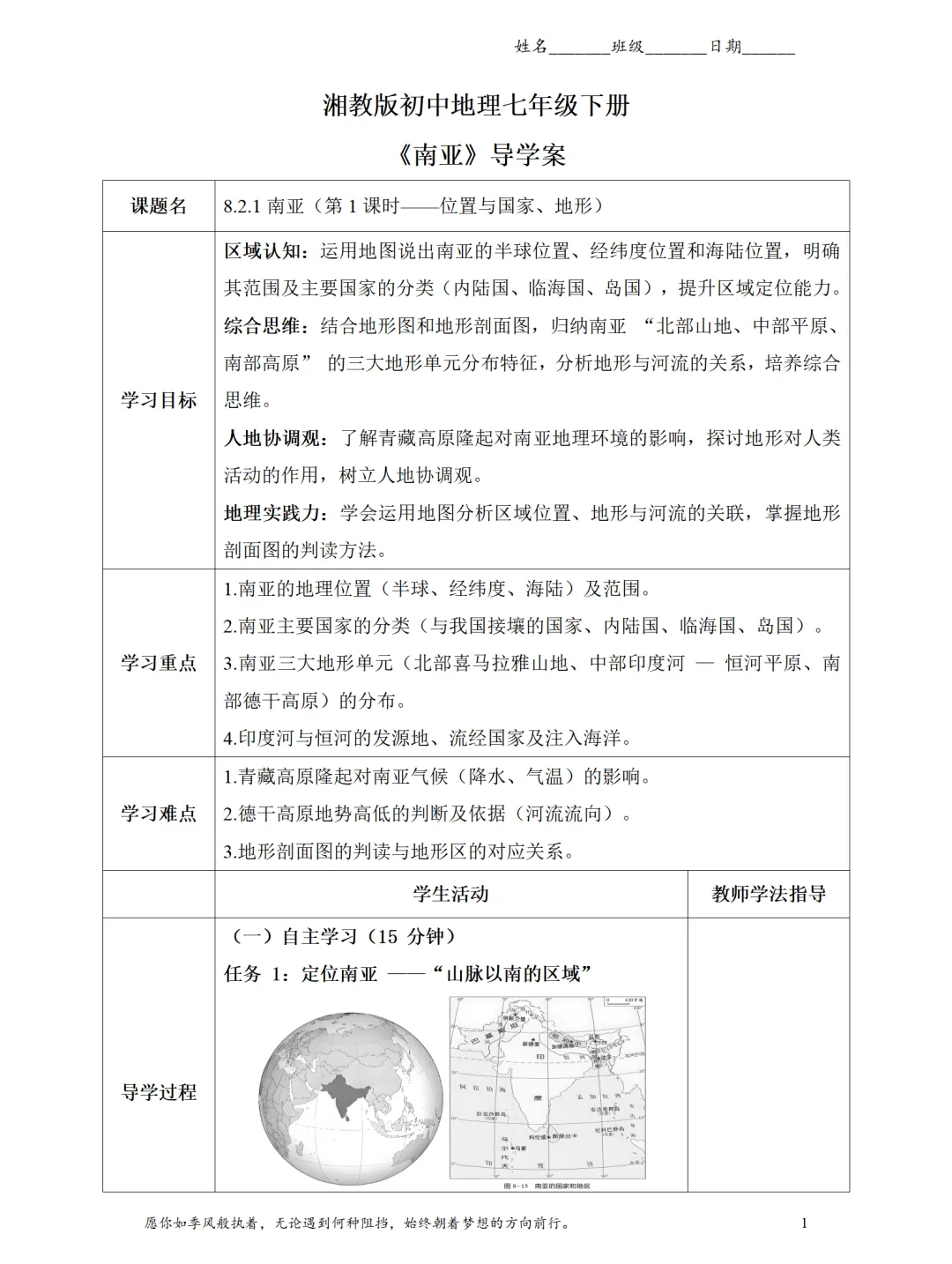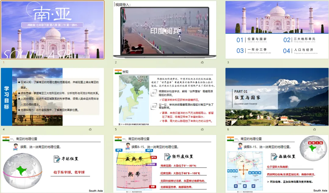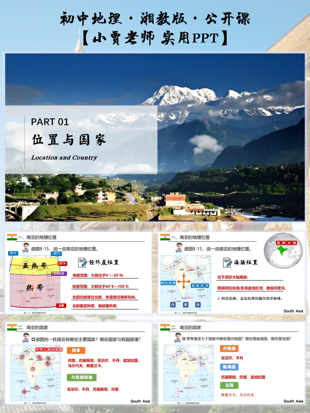 今日重点推荐湘教版七下地理《南亚1》25页精品课件聚焦教学实效。