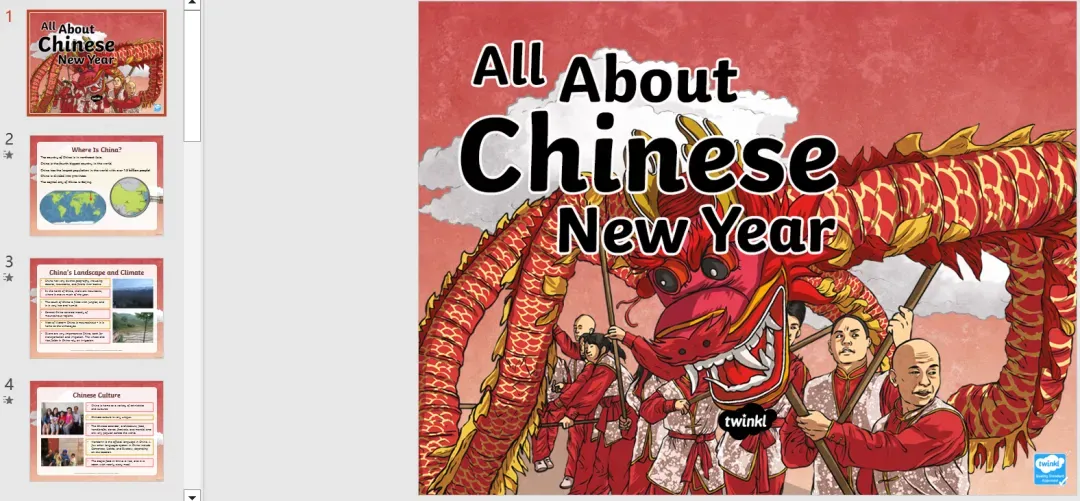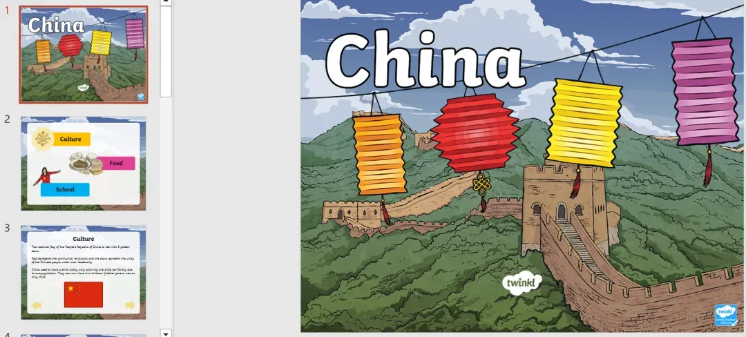 今天给大家带来一套全英文PPT,介绍中国传统文化、节日、历史等,共16个PPT,包含新年、端午、十二生肖、秦始皇、长城、丝绸之路等文化习俗。