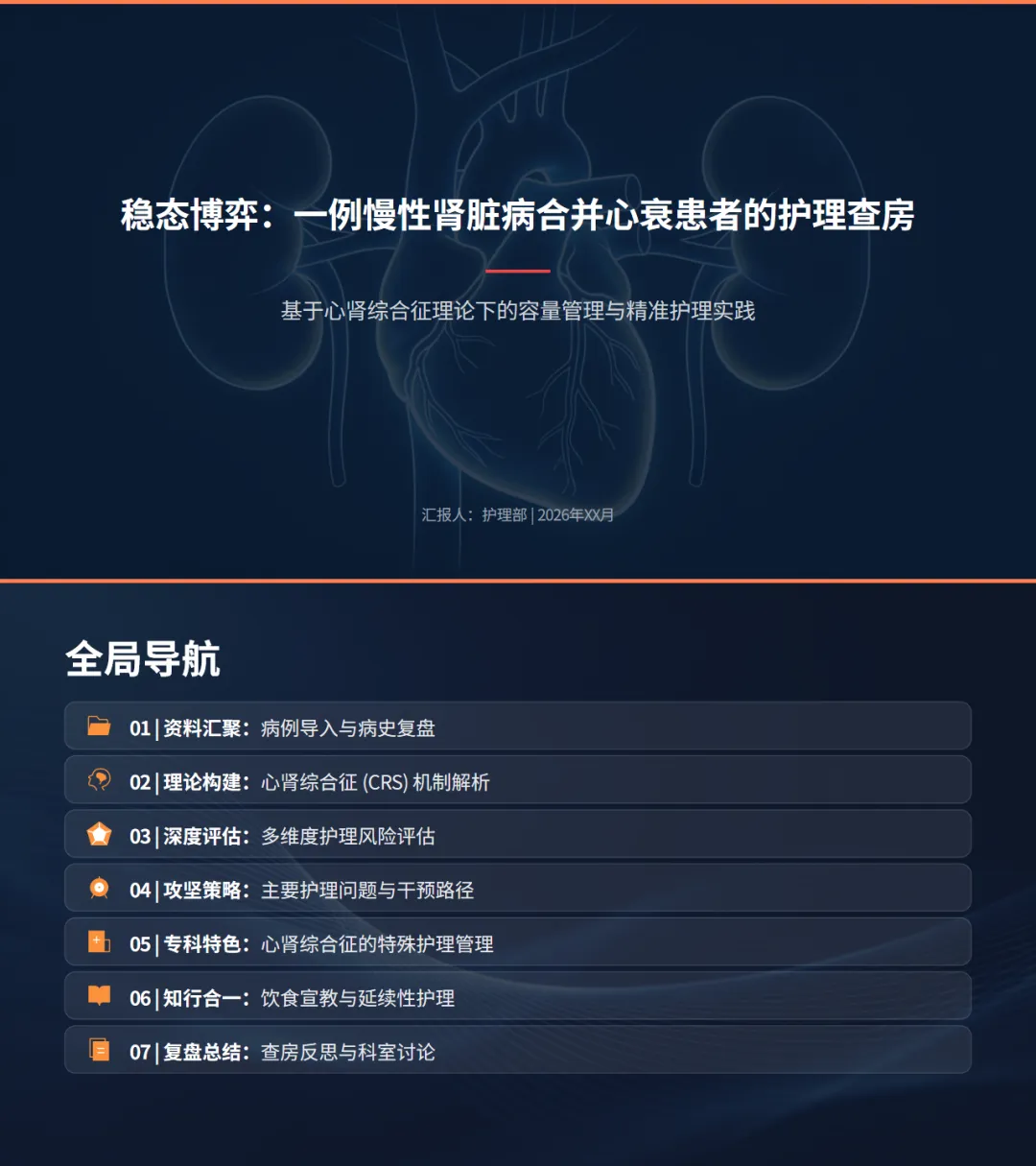 【PPT课件】慢性肾脏病(CKD)合并心衰护理查房:容量管理、血液净化与饮食图解,PPT+宣讲稿