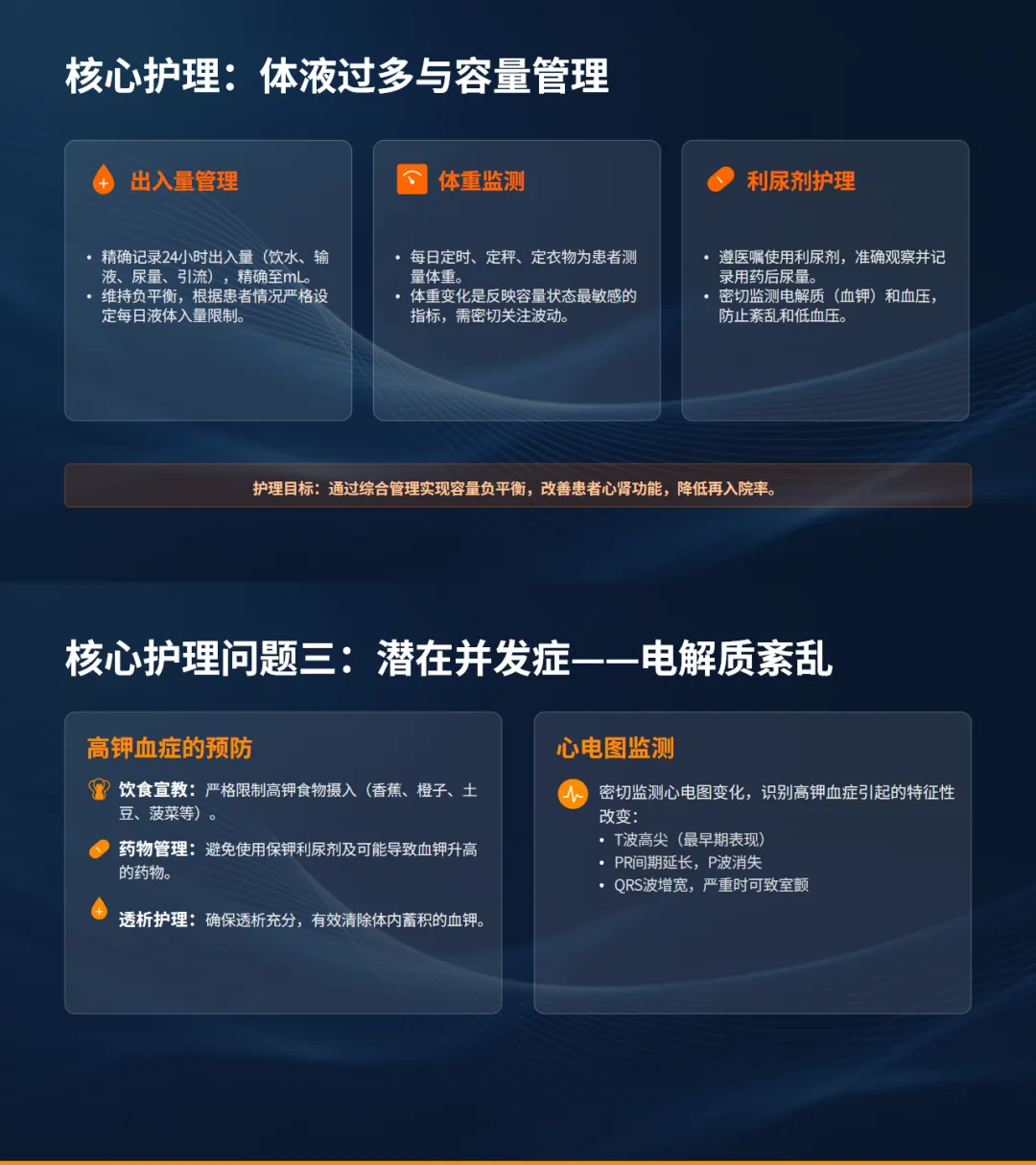 面对这种“相爱相杀”的恶性循环,打破稳态失衡的关键在于实施科学、严密的容量管理,这也是贯穿整个心衰护理和肾脏病护理的生命线。