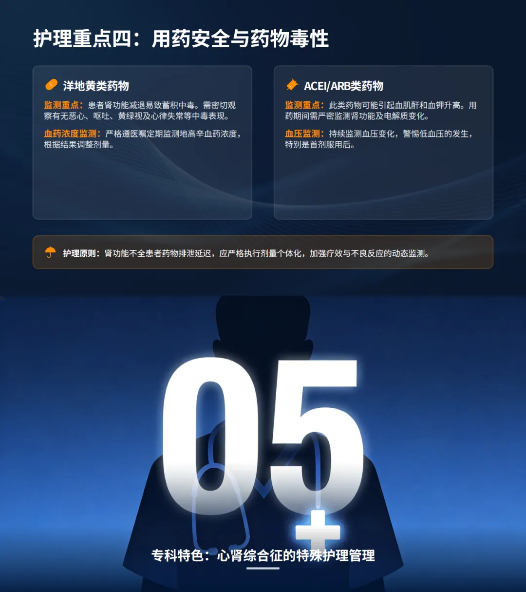 慢性肾脏病合并心力衰竭的护理,是一场与复杂病理生理机制的持久战。只有将心肾综合征的理论基石与精细化的临床护理实践深度融合,将精准护理的理念落实到滴速控制、透析管理及饮食宣教的每一个细节中,才能真正为患者筑起生命的防线,提升生存质量。