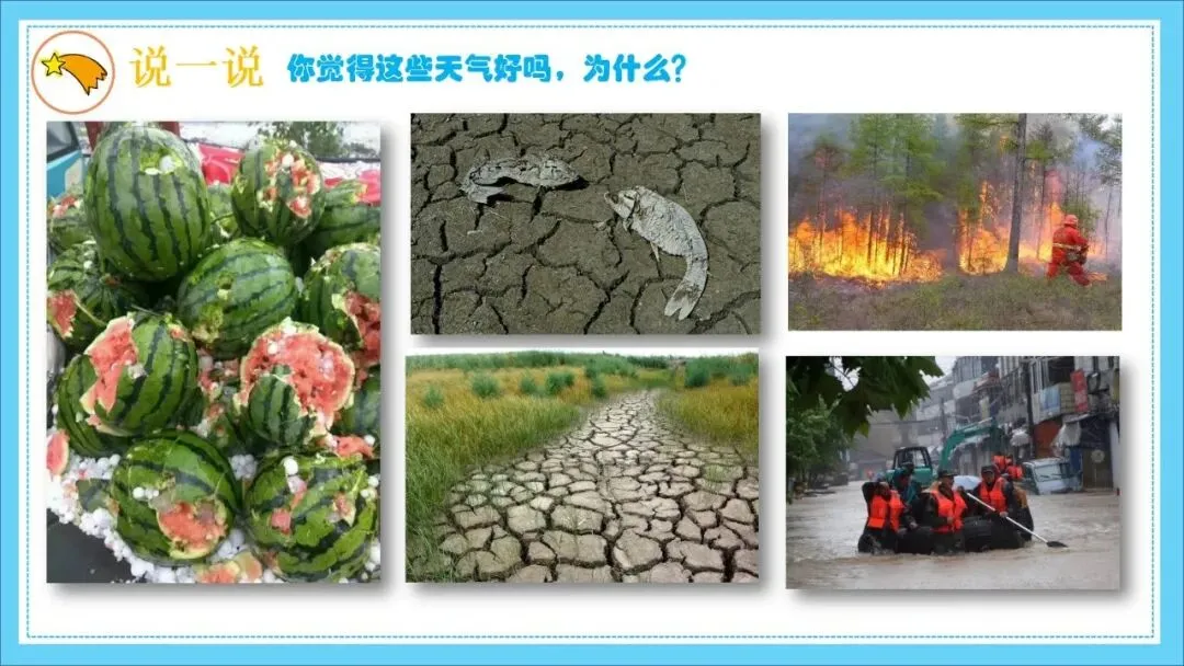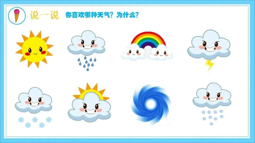 天气千变万化 ,我们生活的环境中,有各种各样的天气 ,气候与我们的生活息息相关 ,大到影响地球生态,小到影响人们的出行计划 ,全球变暖是人类一直以来想缓解的问题。为了让孩子关注到大自然的变化 ,我设计了此次活动 ,让孩子认识各种天气 ,了解天气和我们的关系 ,把爱自然的情感和习惯播种在孩子们的童年中。