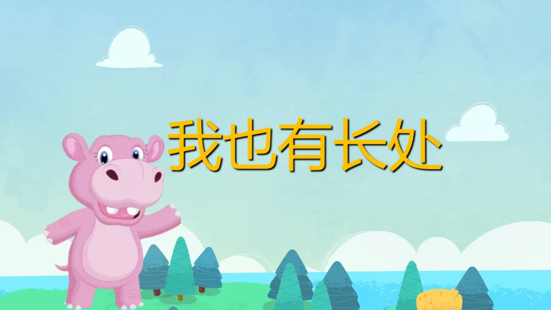 3、第一遍讲述故事(分两部分讲述)。小动物都有长处,小河马友长处吗?我们来听故事“小河马找长处”。