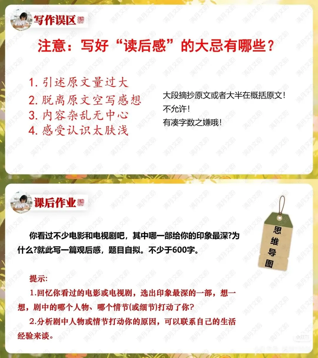 课后延伸:布置观后感写作任务,将读后感的写作方法迁移至影视作品的感悟中,实现能力拓展。#初中语文 #读书爱上写作 #阅读与表达