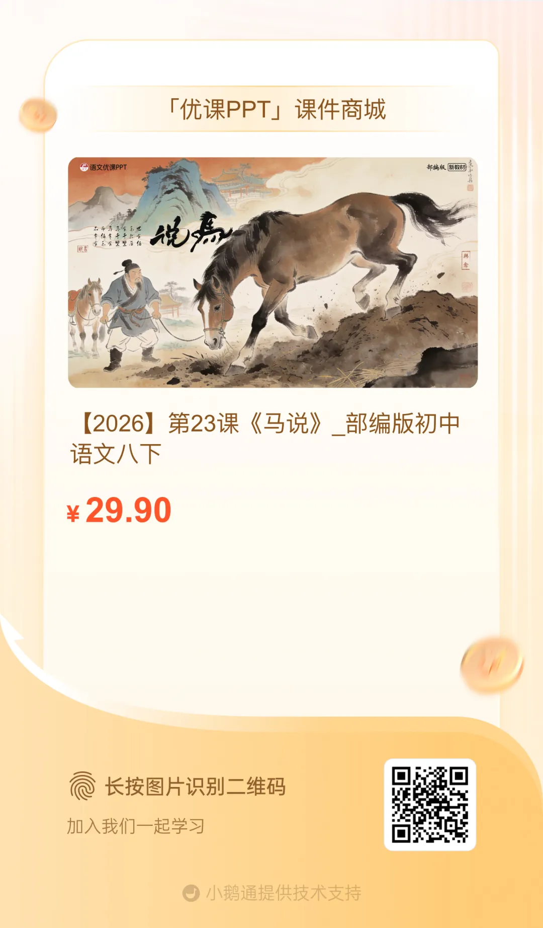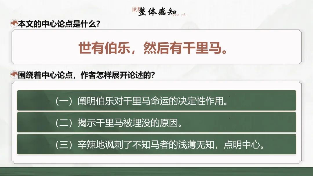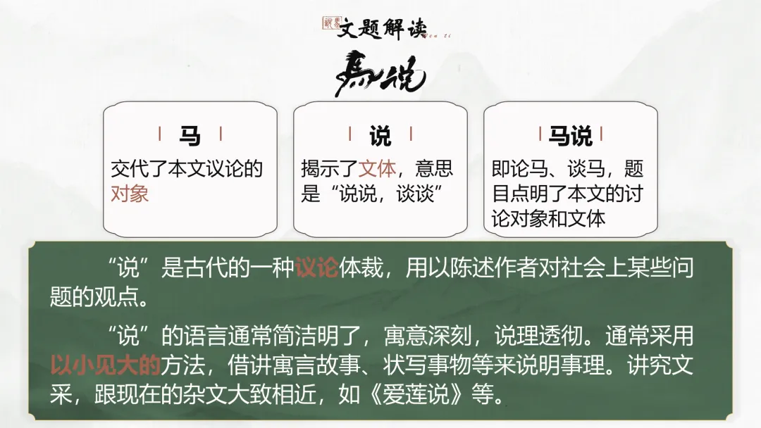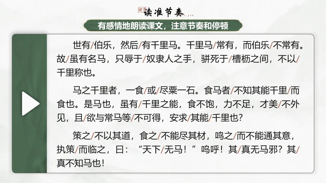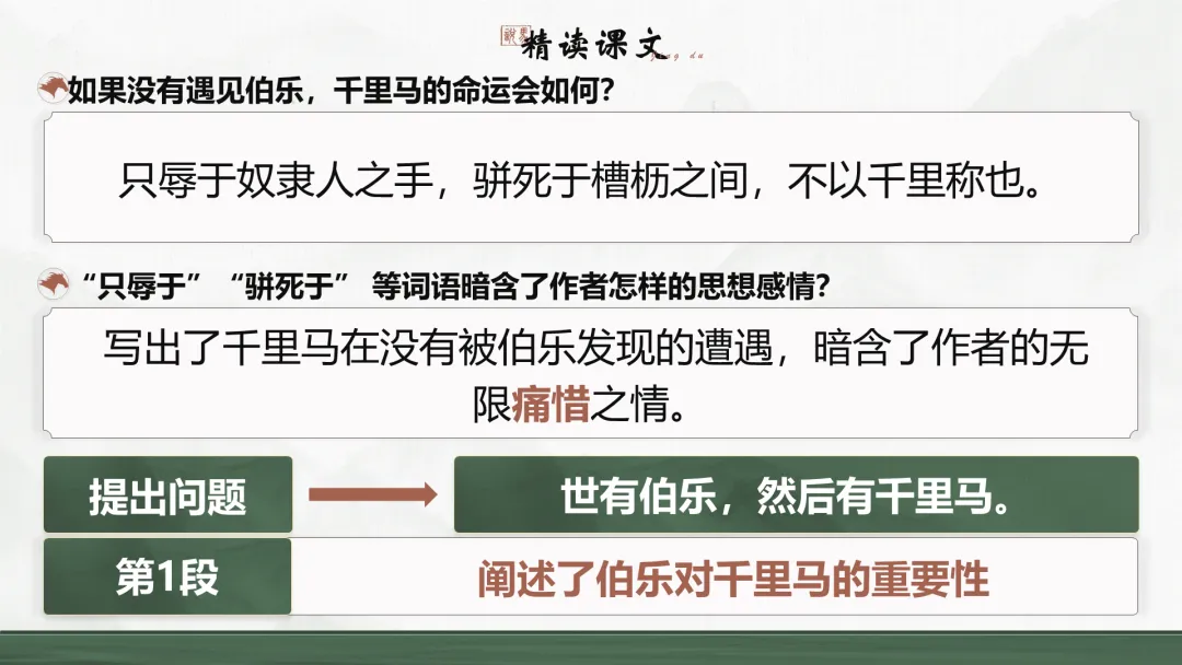本设计以“托物寓意”为核心教学线索,紧扣“伯乐—千里马—食马者”三重象征体系,通过诵读、梳理、品析、思辨四阶递进,不仅扎实落实文言词汇与章法,