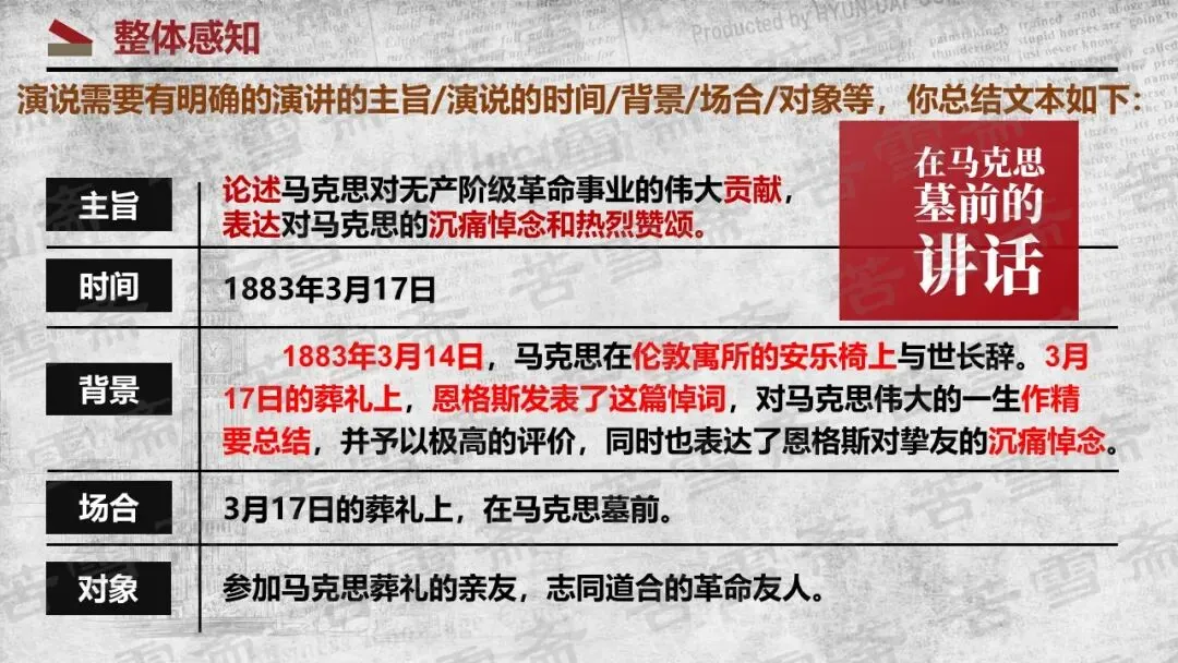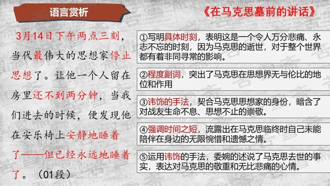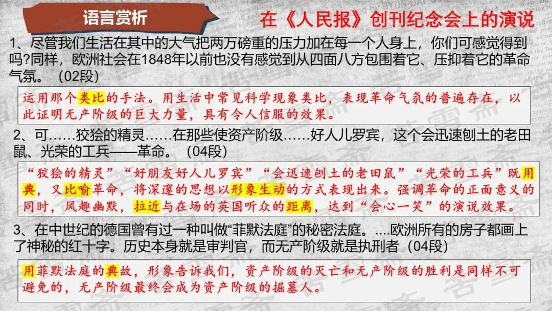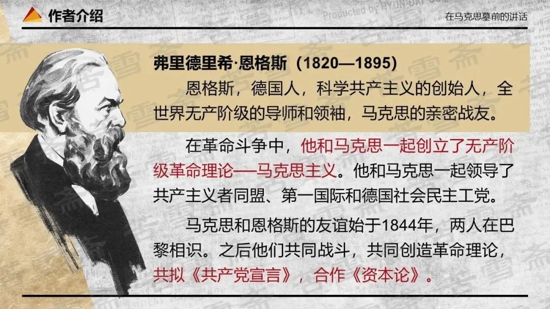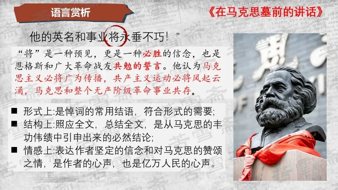 精品课件|必修下册《在<人民报>创刊纪念会上的演说》《在马克思墓前的讲话》联读教学PPT
