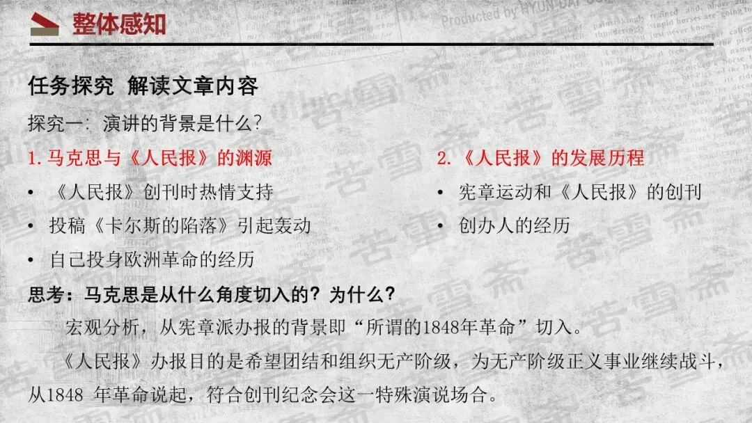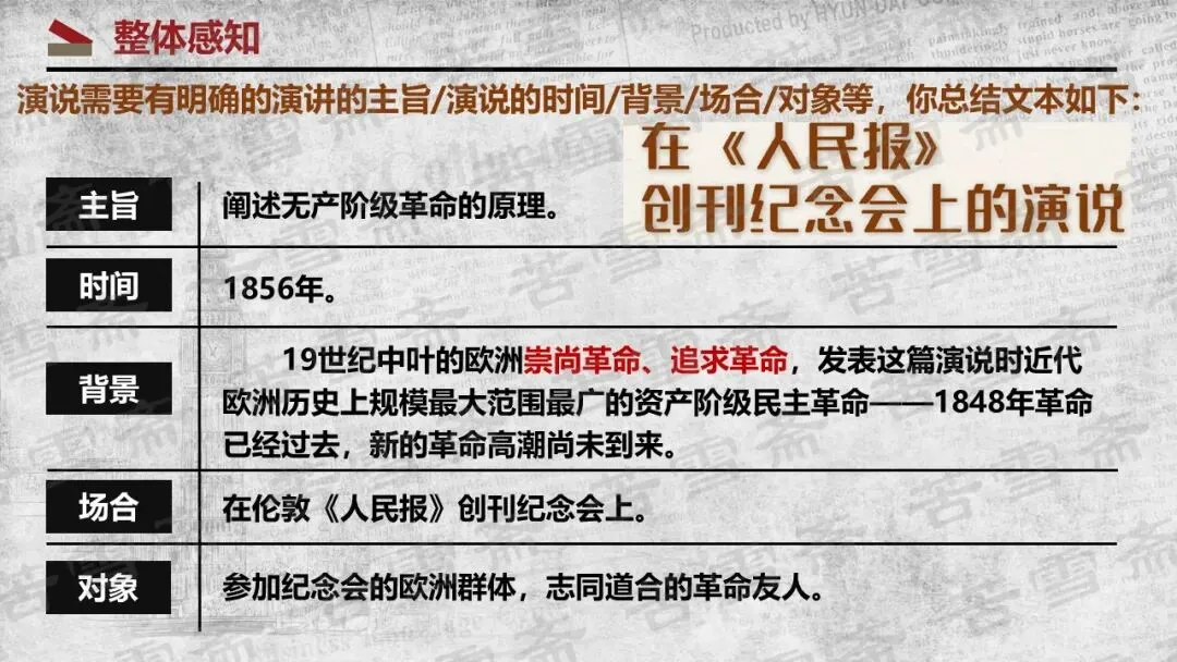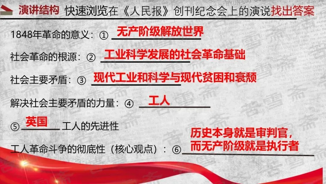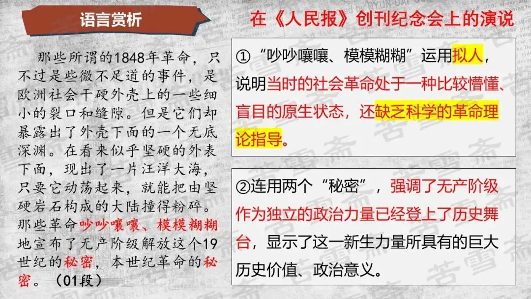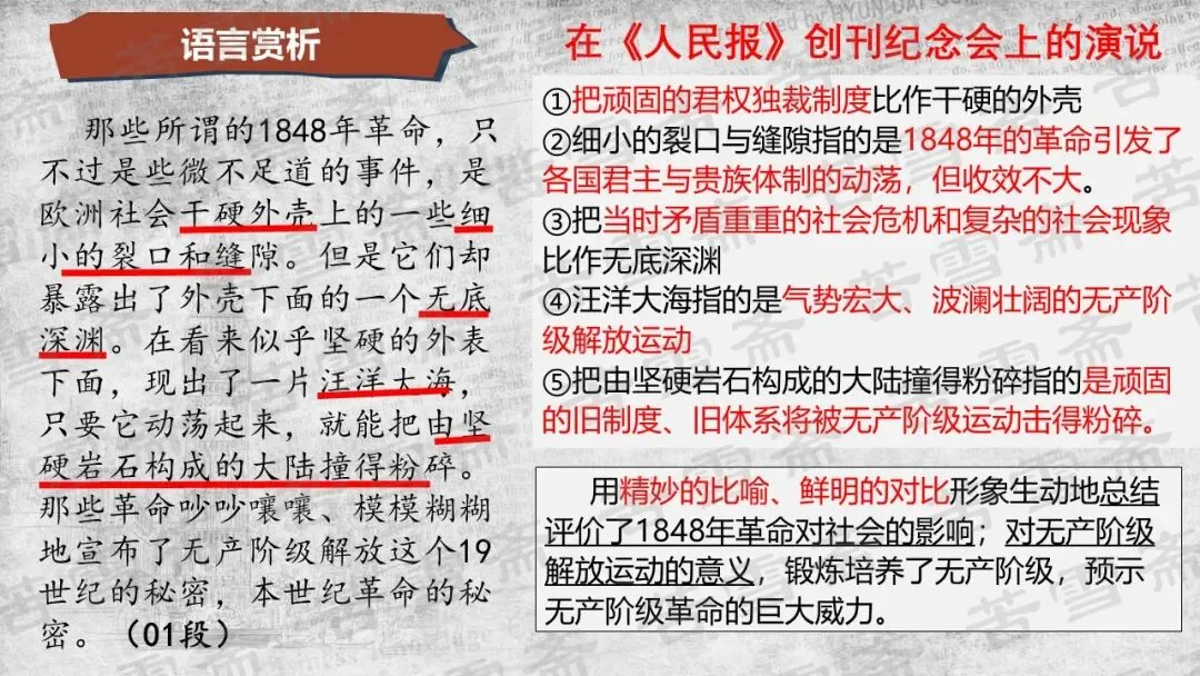 精品课件|必修下册《在<人民报>创刊纪念会上的演说》《在马克思墓前的讲话》联读教学PPT