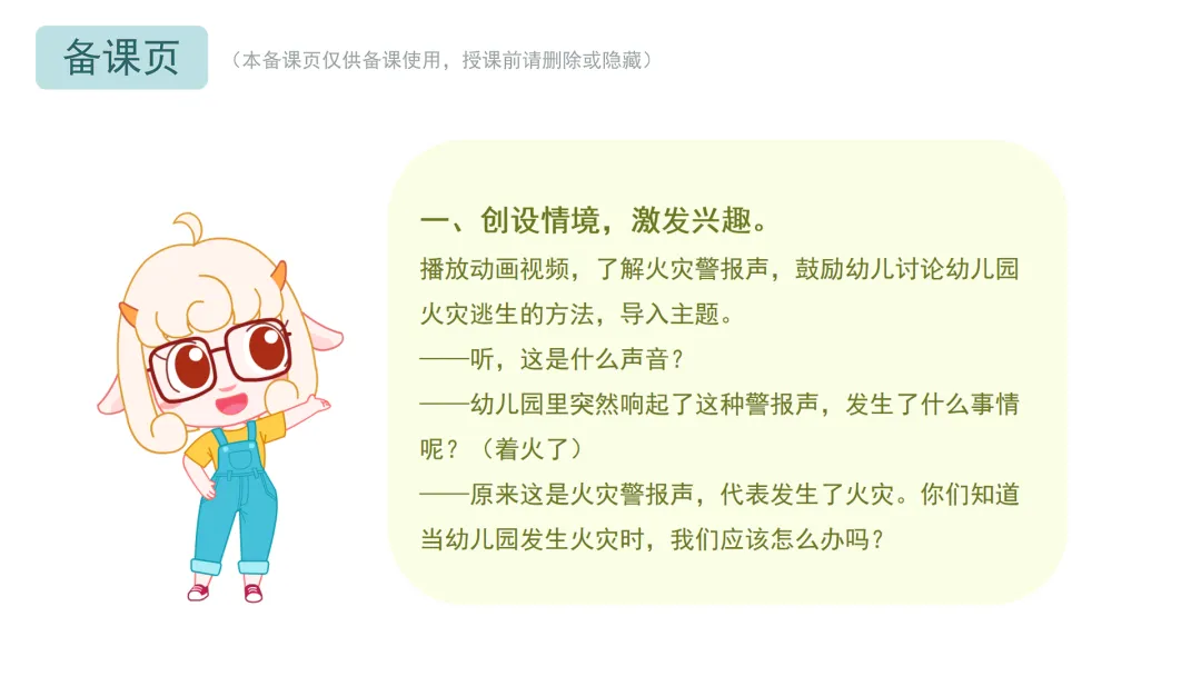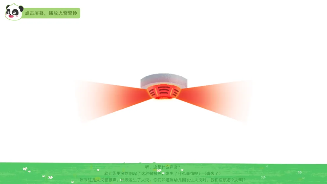 ——幼儿园里突然响起了这种警报声,发生了什么事情呢?(着火了)