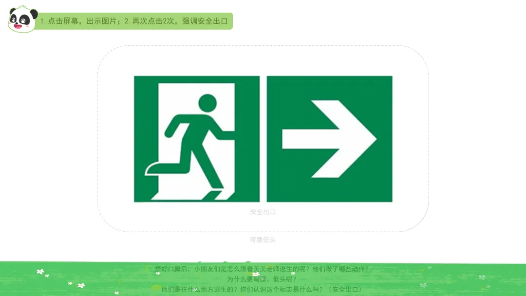 ——他们是往什么地方逃生的?你们认识这个标志是什么吗?(安全出口)