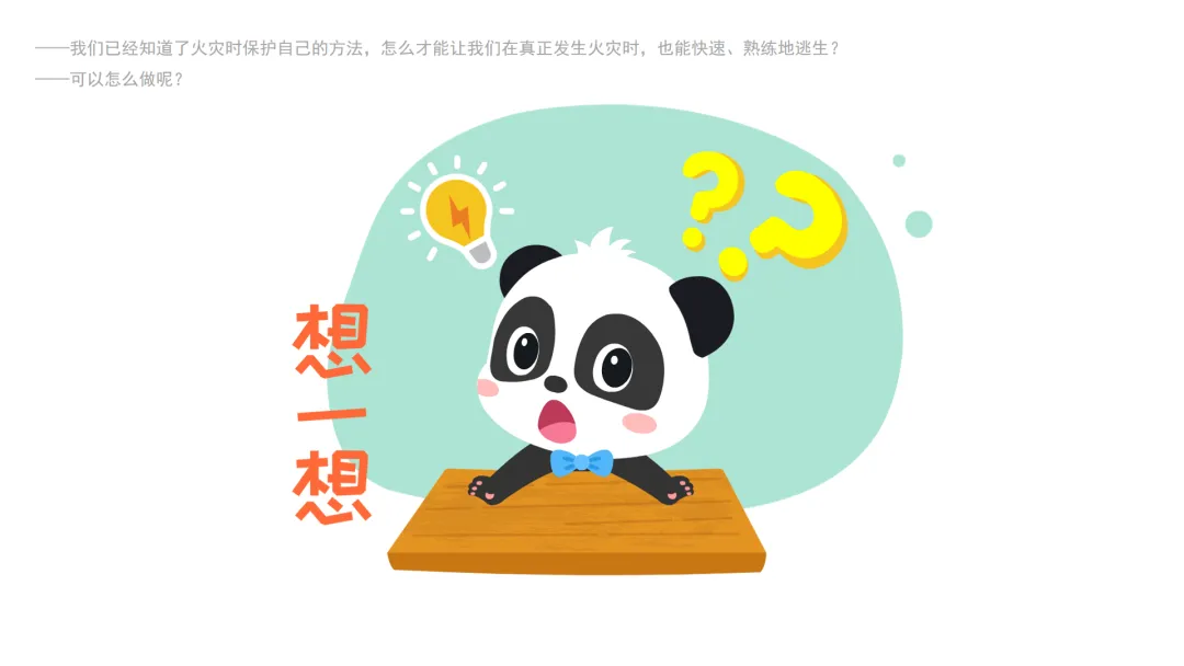 ——我们已经知道了火灾时保护自己的方法,怎么才能让我们在真正发生火灾时,也能快速、熟练地逃生?可以怎么做呢?
