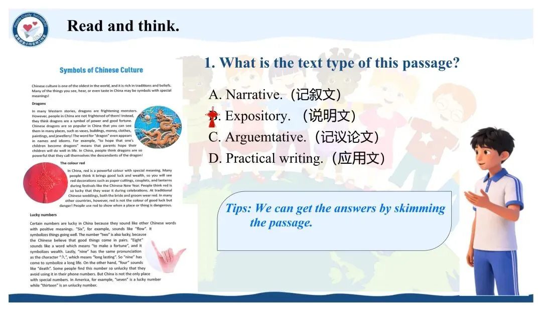 亲爱的老师们: 大家好!欢迎来到教育部金小玲快乐英语名师工作室公众号,我们为您精心准备了新教材人教版八年级下册英语原创教学资源开发专栏。 我们初中部团队汇聚了正高级教师、特级教师、教研员、工作室主持人、学科带头人、教研组长及一线骨干教师等专业力量,倾力打造与新教材人教版八年级下册配套的系列希沃教学课件与教学设计,相关课件与教学设计将同步上线国家中小学智慧教育平台,供各位老师备课参考。这些资源遵循教学大纲要求,融入丰富的教学活动、互动环节与情景语篇,深度践行新课程标准,采用大单元教学评一体化模式,巧妙运用 AI 技术赋能课堂创新,让 "快乐英语教学" 的理念贯穿教学全程,助力教师快乐地教,学生快乐地学,快乐地出教学成果。 本期推出的优秀教学课件是教育部金小玲名师工作室邓敏工作站刘艳老师带来的新教材人教版八年级下册 Unit6 Crossing Culture Period7 Section B Reading Plus希沃教学课件。让我们一同开启这段生动有趣的英语教学新旅程! Unit6 Crossing Culture Period7 Section B Reading Plus Unit 6 Crossing Culture  设计亮点 本系列课件紧扣新课标要求与教材单元主题,以大单元整体教学为统领,深度践行金小玲名师工作室“快乐英语”理念,严格遵循英语学习活动观,将学习理解、应用实践、迁移创新三层次目标梯度贯穿各课时教学全程。课件依托希沃白板互动功能与AI智能技术赋能课堂,创新设计情境探究、任务驱动、小组PK、闯关挑战等多元趣味运动,搭配分层学习支架,兼顾城乡学情与不同能力水平学生,凸显学生主体地位;同步嵌入自评、互评、师评相结合的多元分层评价体系,以星级量表、即时反馈、荣誉激励实现“教学评一体化”,扎实落地语言能力、文化意识、思维品质、学习能力四大核心素养。同时深挖中国文化内涵、融入跨文化对比内容,在语言教学中渗透价值引领,让课件兼具趣味性、实用性、素养性与规范性,既助力教师高效备课、快乐教学,也让学生在乐学善学中提升英语综合运用能力。 作者简介 刘艳:女,中学高级教师,现任教于云南省曲靖市二中附属中学,担任英语教研组长。系教育部金小玲名师工作室邓敏快乐英语教学工作站成员,曲靖市初中英语李金春学科基地成员(2024—2026)。深耕英语教学一线,业务精湛,多次荣获区、市级教学竞赛一等奖,并深度参与区、市、省级课题研究。2015年,获公派留学资格赴澳大利亚昆士兰科技大学访学深造。曾受聘为云南省首届初中英语陈明雄工作室成员(2014—2016),并荣获“优秀成员”称号。 撰稿:刘艳 编辑:黄荣 初审:邓敏 刘艳 二审:黄荣 终审:金小玲 |