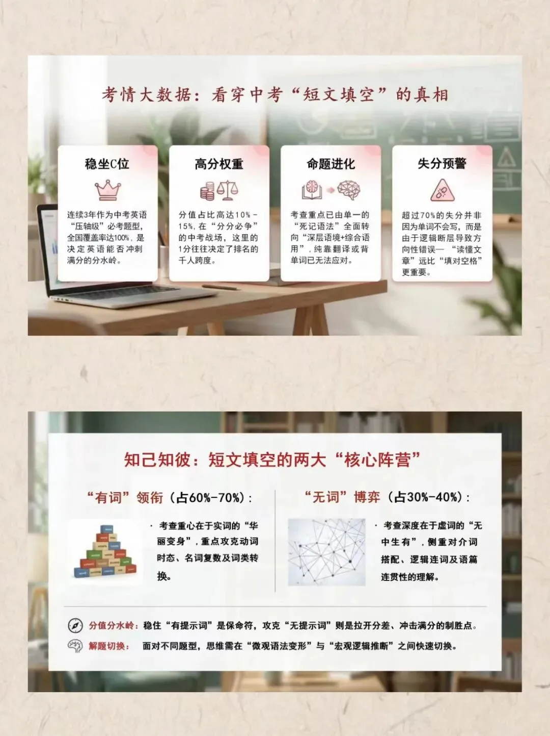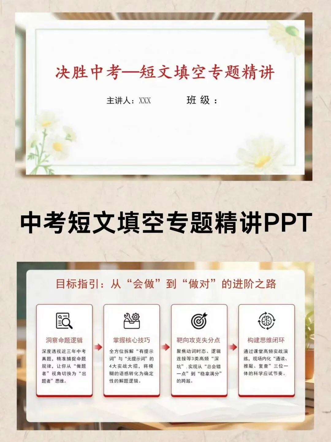 还在为中考英语短文填空频频丢分而苦恼?这份专题精讲课件,帮你精准突破失分重灾区!从高频考点梳理、核心解题技巧,到易错陷阱规避、完整答题思路,层层拆解、步步精讲,助力学生彻底吃透题型,稳稳抓住每一分。