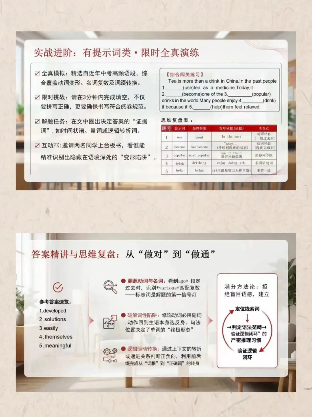 课件逻辑清晰、方法实用,无需熬夜打磨备课,拿来即可直接授课。既能帮助学生高效复习、快速提分,也能切实减轻老师教学负担。欢迎转发分享给同组教师,携手并肩,助力学子全力冲刺中考,拿下英语高分!