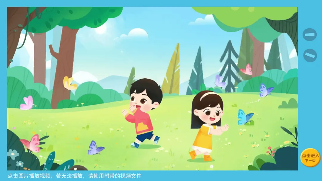 ——贝贝和小珍来到了户外,发现有好多漂亮的蝴蝶。