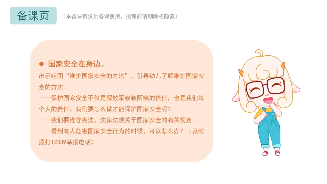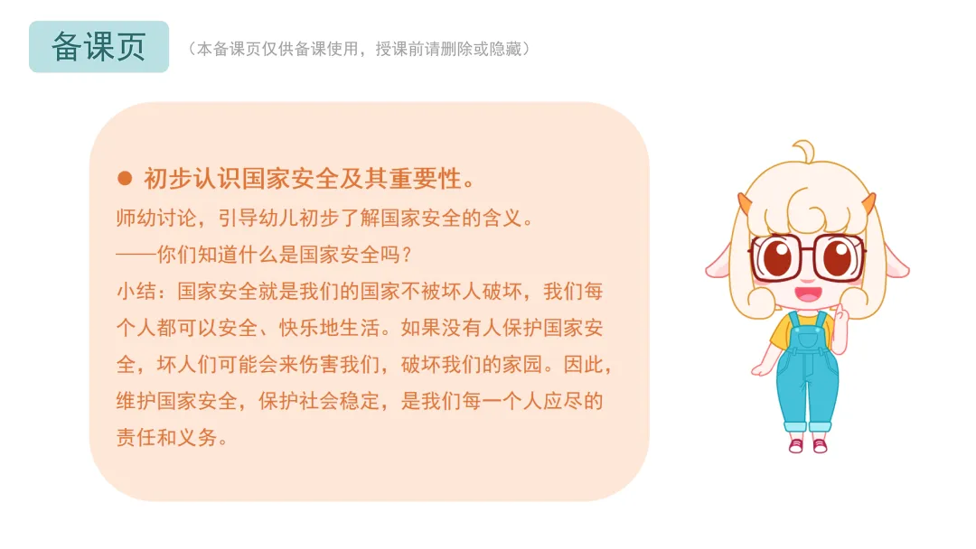 ——保护国家安全是我们每个人的责任,希望小朋友们能够在日常生活中践行国家安全意识,为我们的祖国贡献一份力量。