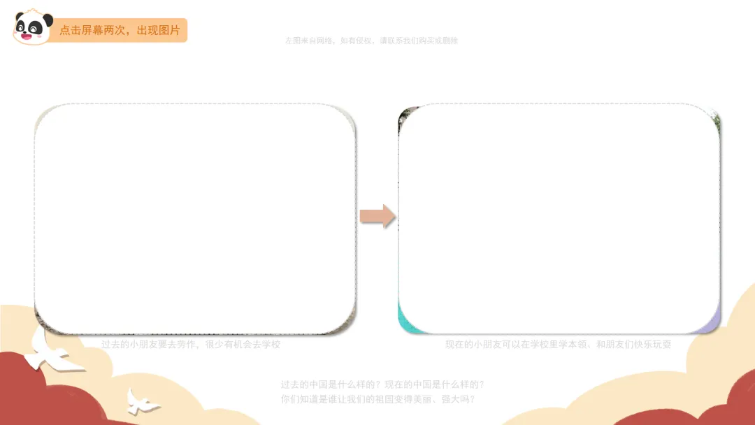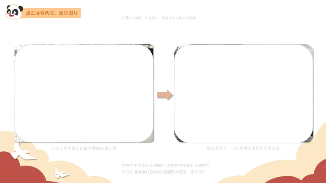2.出示组图“祖国的变化”及“热爱共产党”,引导幼儿了解政治安全。