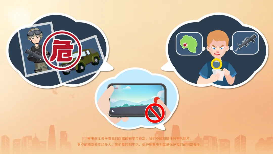 小结:军事安全关乎着我们国家的安宁与稳定。我们不能拍摄任何军队照片,更不能随意分享给外人。我们要时刻牢记,保护军事安全就是保护我们的国家安全。