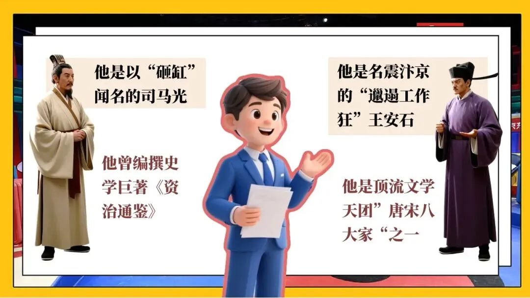 当我第一次看到这份教学设计的导入语时,着实愣了一秒——它在开口第一句就打破了古文课堂惯有的那种肃穆感。“砸缸”是司马光,“邋遢工作狂”是王安石,“顶流文学天团唐宋八大家”,“年少时把酒论道、惺惺相惜”,“那时汴京的花开得正盛”……