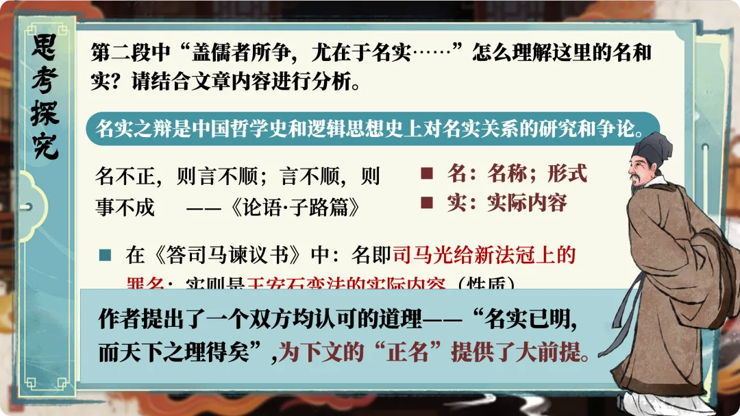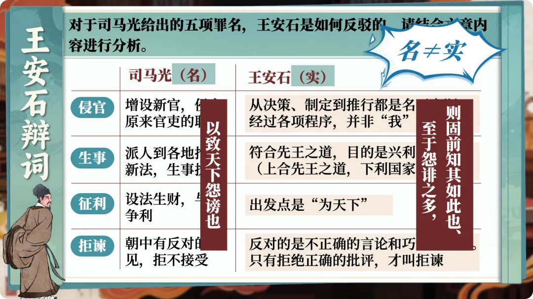 很多人读这篇文章,停留在“王安石反驳了五条罪名”这个层面。但这份教学设计抓住了一个更本质的东西:名实之辩。