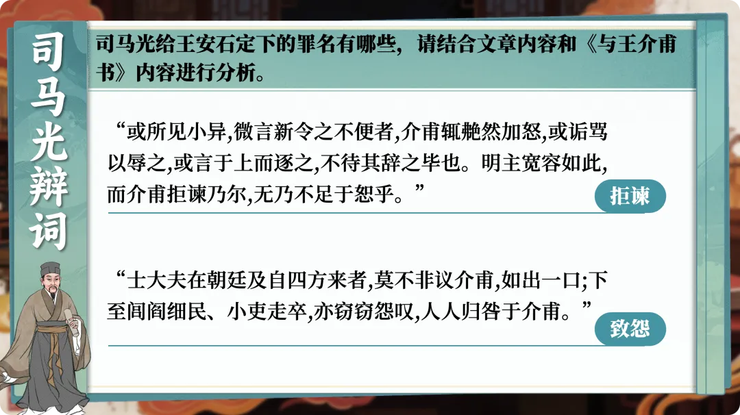 公开课一等奖《答司马谏议书》课件+教学设计《奇葩说·北宋篇》开录!北宋政坛顶流,司马光@资治通鉴编辑部和王安石 (变法版)在线开撕!