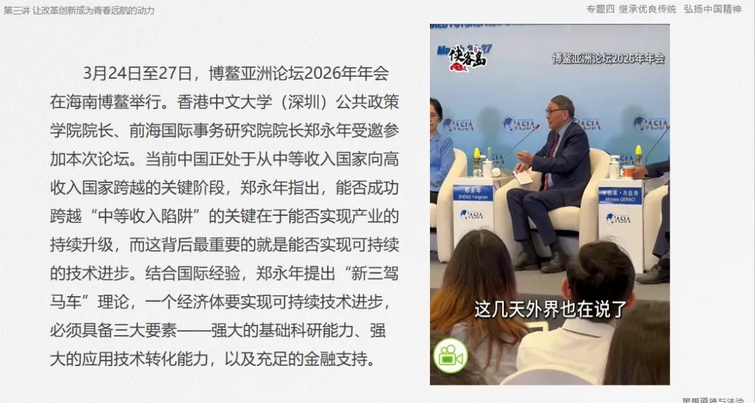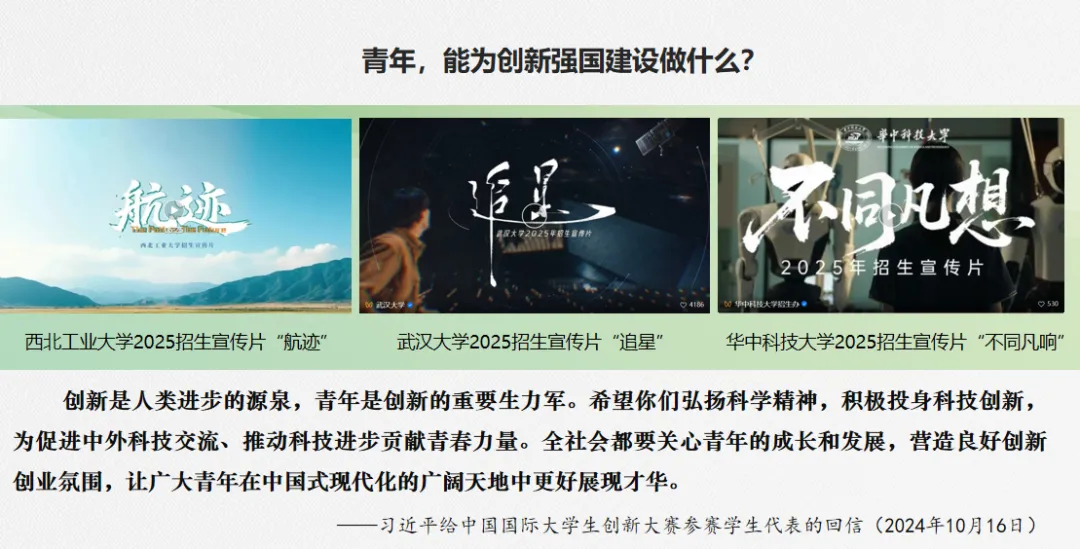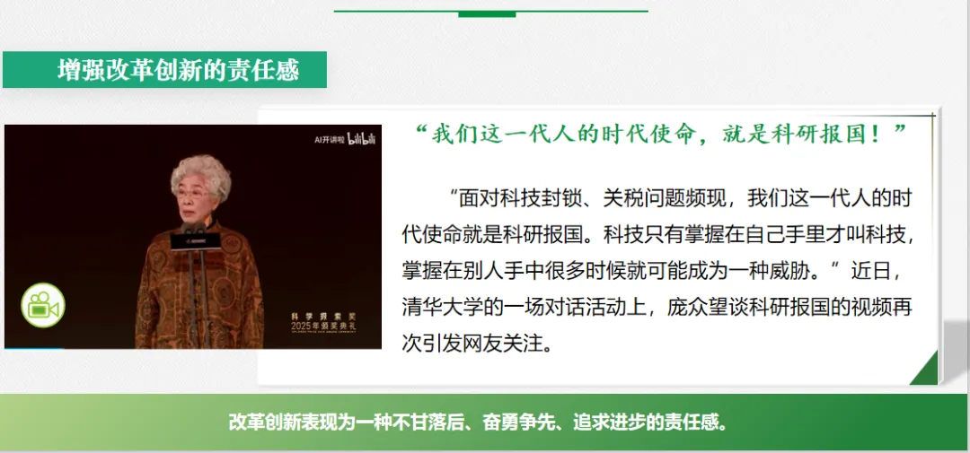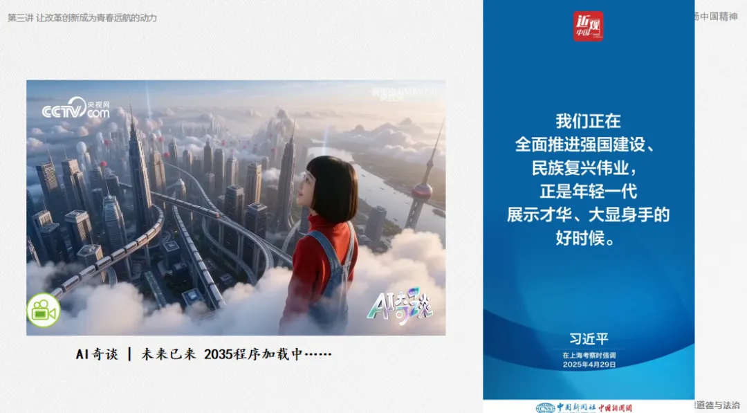 以视频“未来以来 2035程序加载中”作为结束,鼓励新时代的青年学生抓住时代机遇,投身改革创新实践,勇做改革创新生力军。