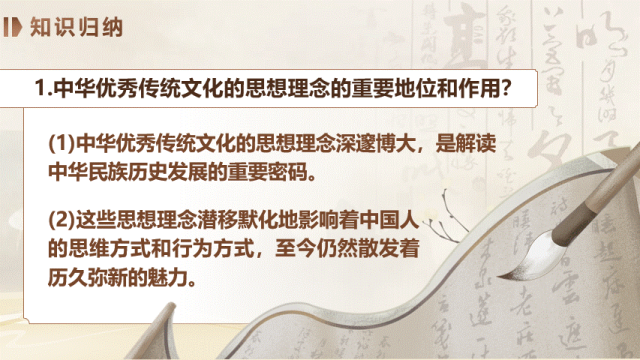 中华优秀传统文化的思想理念的重要地位和作用;中华优秀传统文化的四大思想内涵。