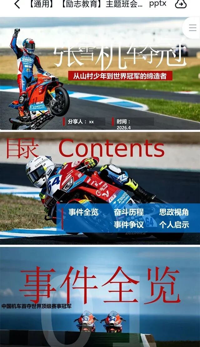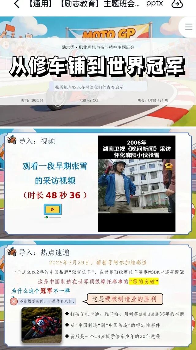 励志教育主题班会《张雪机车夺冠》PPT课件讲稿