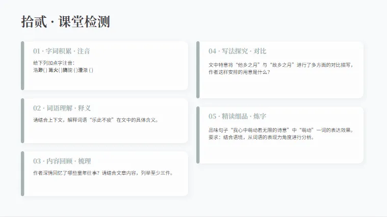 内容覆盖全册课文逐篇精讲、中心思想、段落解析、重点词句梳理,搭配清晰易懂的课堂课件,孩子课前预习、课上听讲、课后复习都能用。每个单元配套考点归纳、重难点突破、易错点提醒,不用再零散找资料,也不用熬夜翻课本。无论是家长在家辅导,还是老师备课使用,或是孩子自主学习巩固,都能一站式搞定。从基础夯实到能力提升,全程陪伴五年级语文学习,让课堂效率更高,复习更有方向,轻松应对单元检测与日常积累,语文成绩稳步提升。