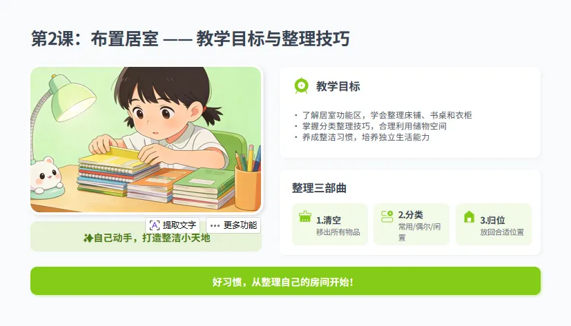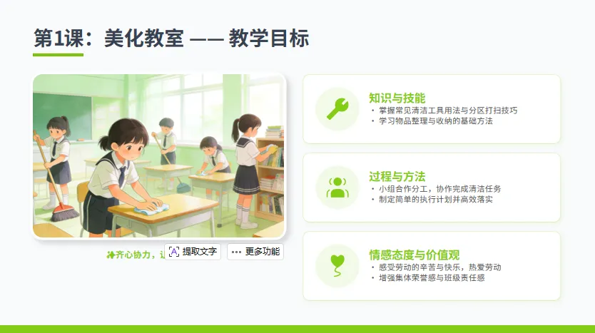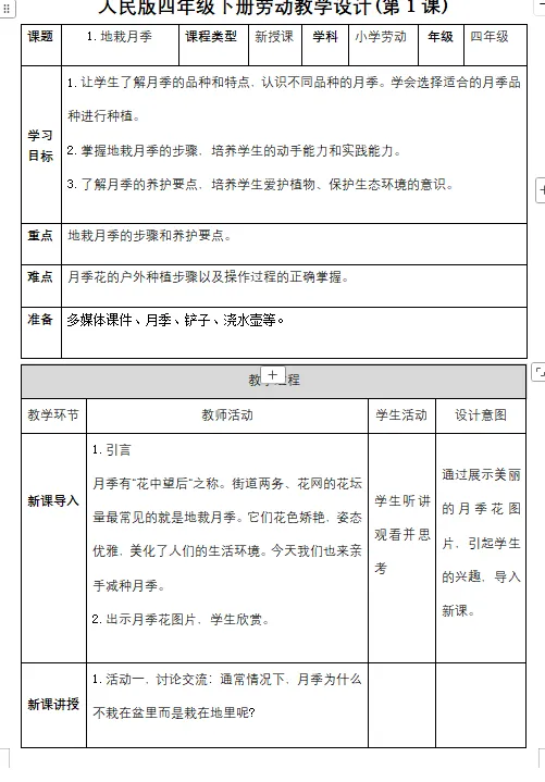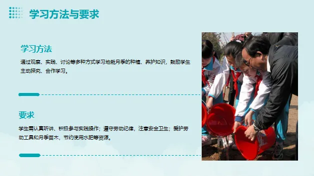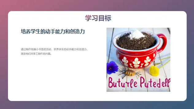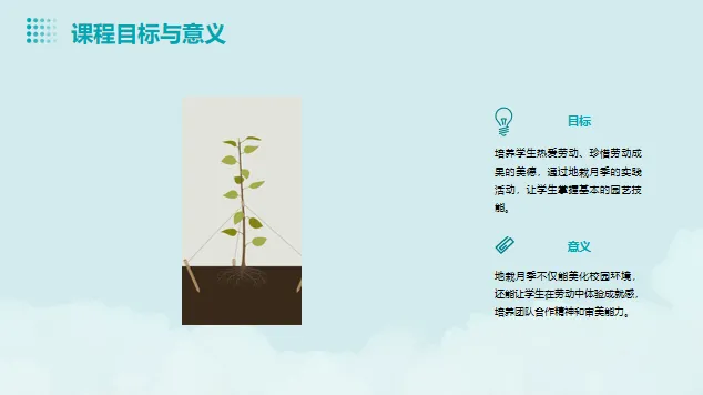 情感目标:激发热爱劳动、热爱生活的思想感情,陶迨学生的审美情趣。