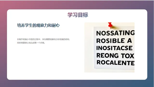 师:是呀,这些书签真是太漂亮了。书签不仅外形美观,而且有很多作用,你知道有什么作用吗?