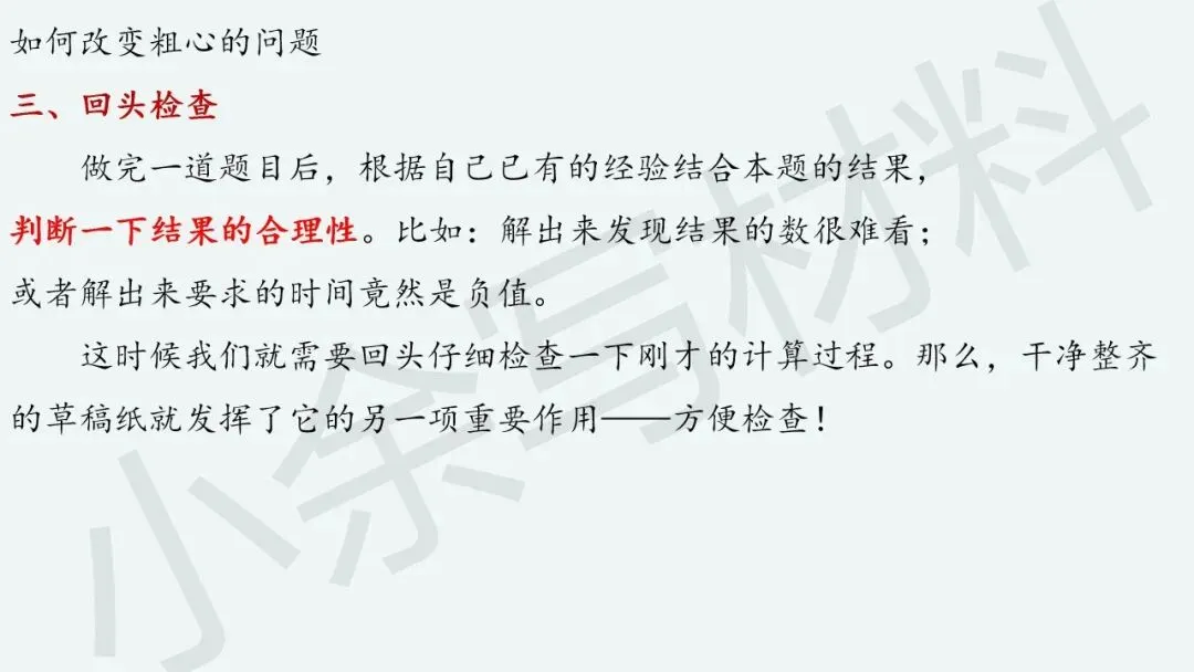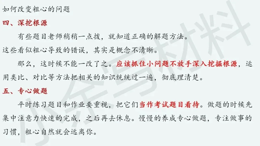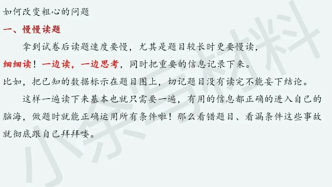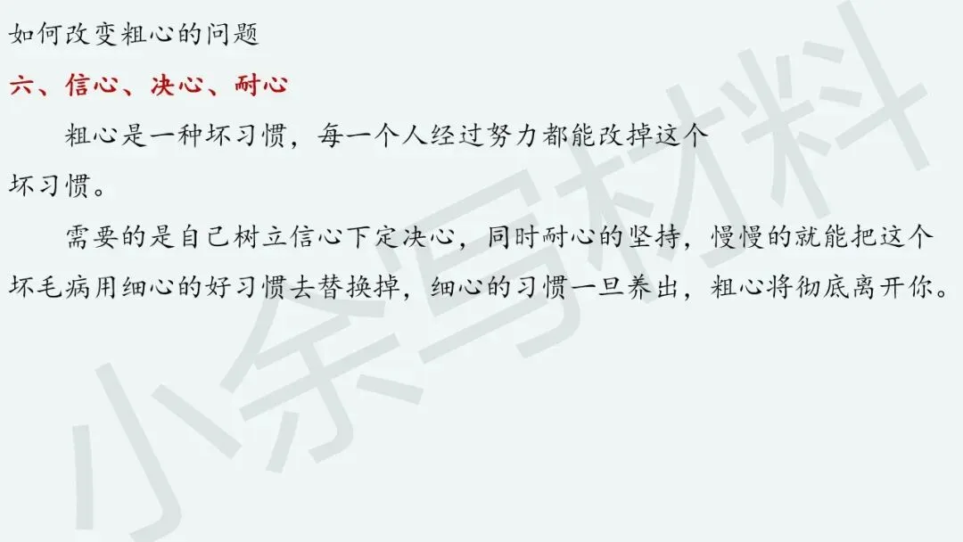 既然“粗心”问题的本质原因找到了,接下来就很好处理了,对症下药就好了哈。