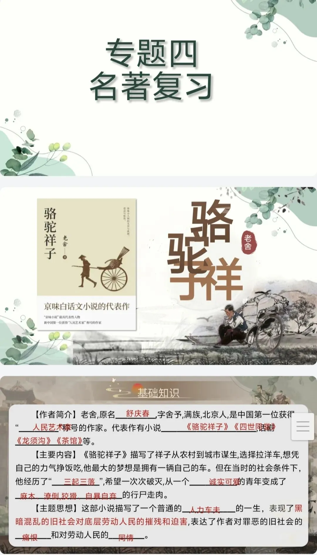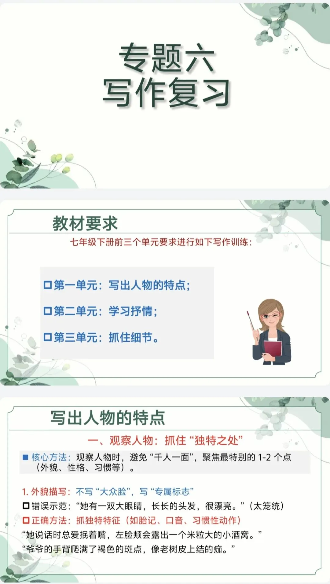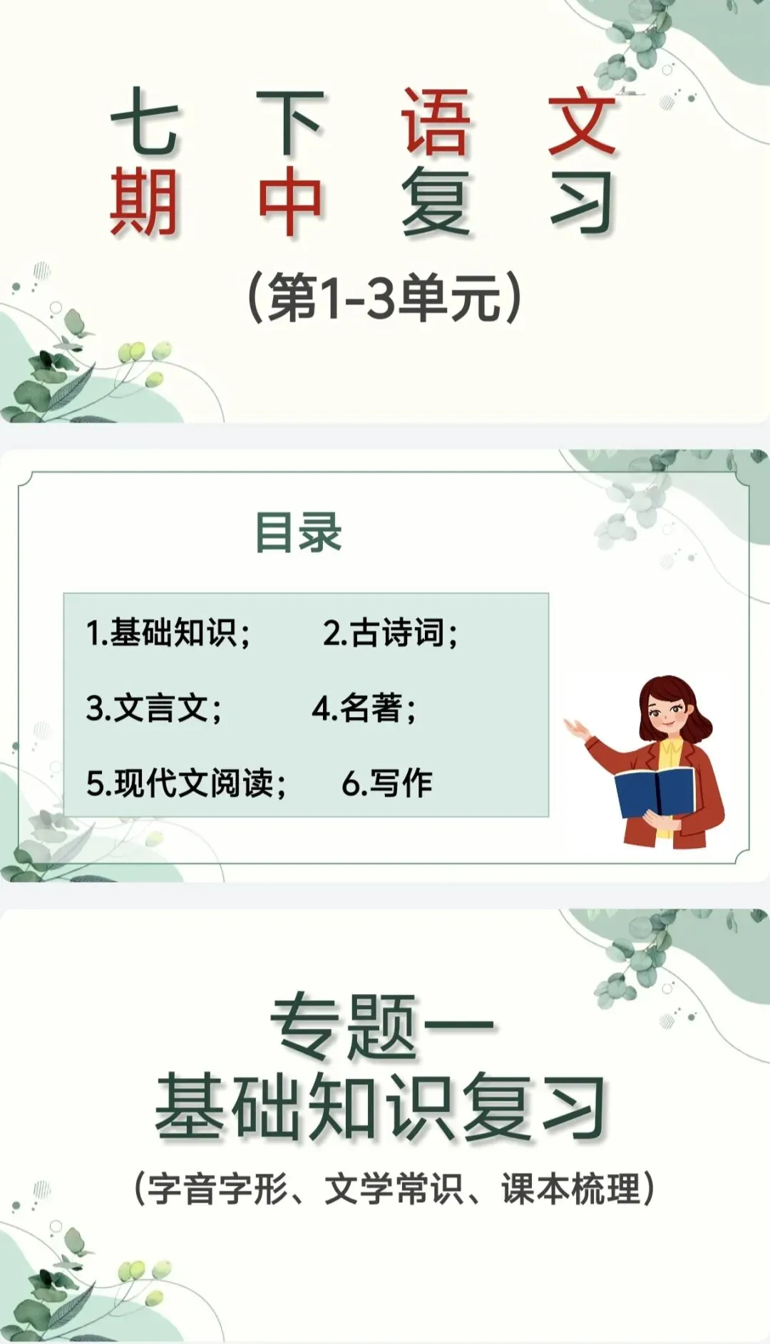 六个大专题:基础知识、古诗词、文言文、名著、现代文阅读、写作!全方位地毯式复习,重点全包括!这么全面的复习课件,你值得拥有🥹准备复习的老师抓紧用起来!还有各个专项习题和期中模拟卷🔥