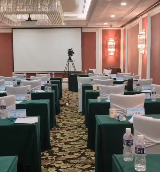 观察会场:长方形、层高比较低、讲台在平地上,投影、亮度不高;