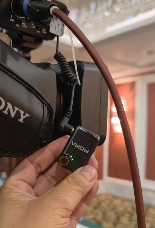 录音2:给讲师同时佩戴无线麦克,单独收录老师声音,作为备用音频;小蜜蜂收音干净,可有效规避现场话筒串音、回声等问题。(2声道录的小蜜蜂声音,4声道录的环境音)