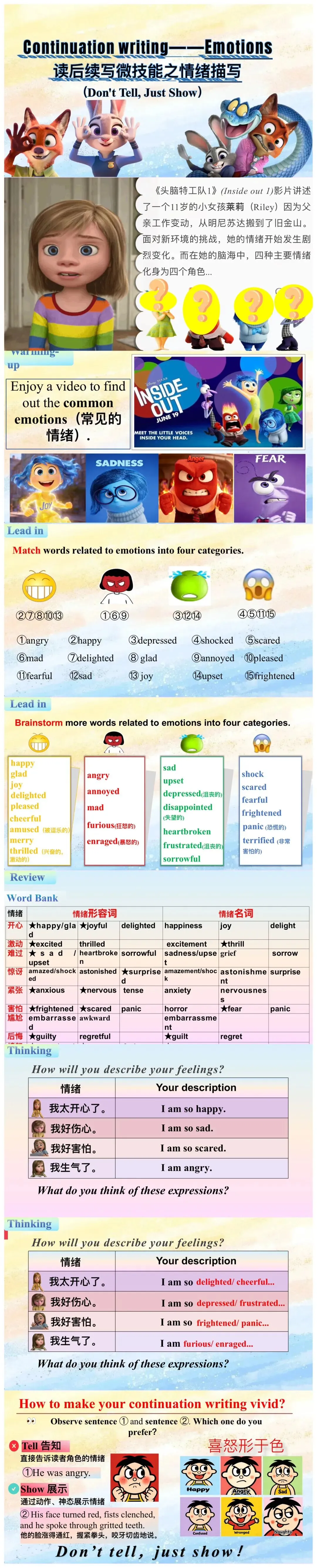 读后续写之情绪描写技巧课件-2026届高考英语复习专项