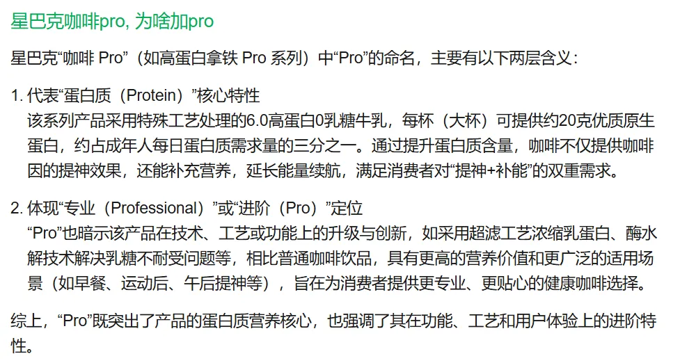 咖啡还有PRO版了咩?平常也就看那些电子产品各种“PRO”. 当时就感觉现在这PRO还真是滥用成灾呢。没想到微信AI搜索了一下,有个小惊喜: