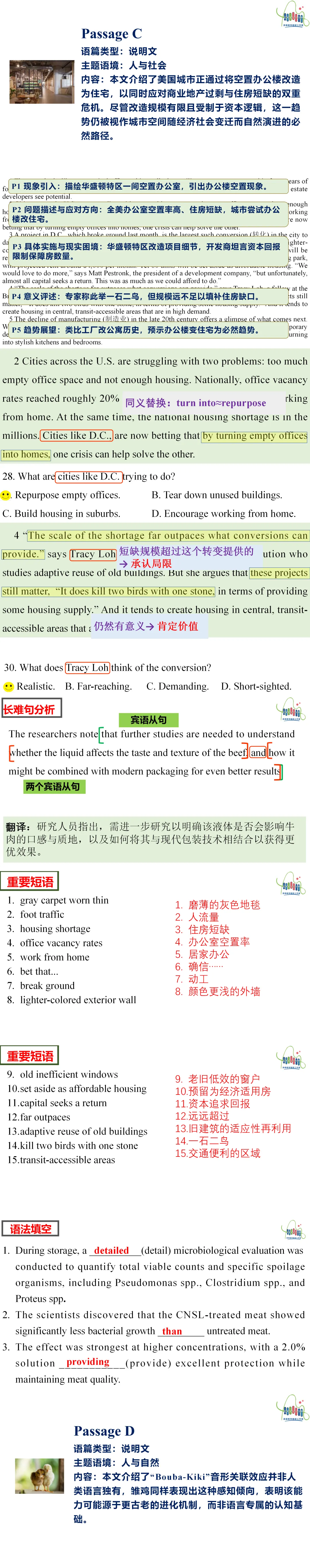 以下仅展示部分内容(完整版内容非常丰富)(所有阅读语篇都是和C篇一样的解析模式,包括核心词汇,长难句分