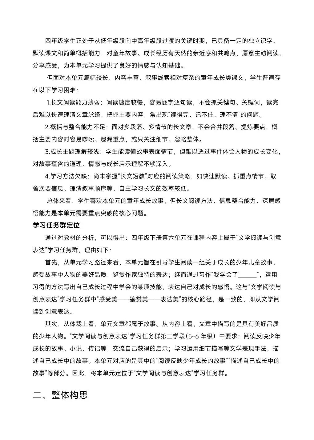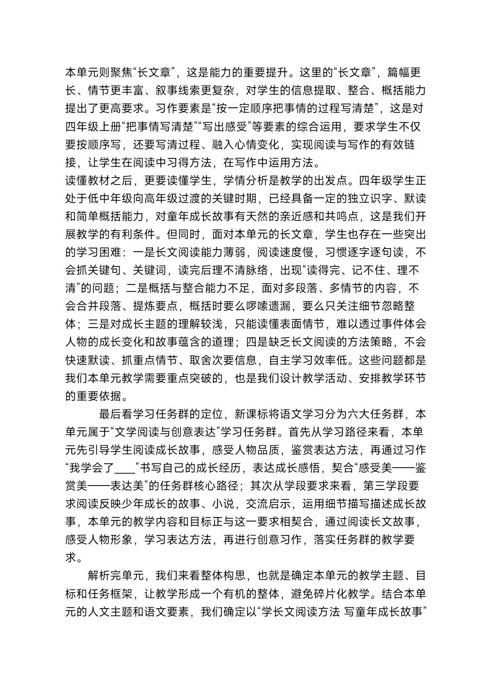 [单元解读]四年级下册第6单元教材解读课件+整体教学设计+发言稿.