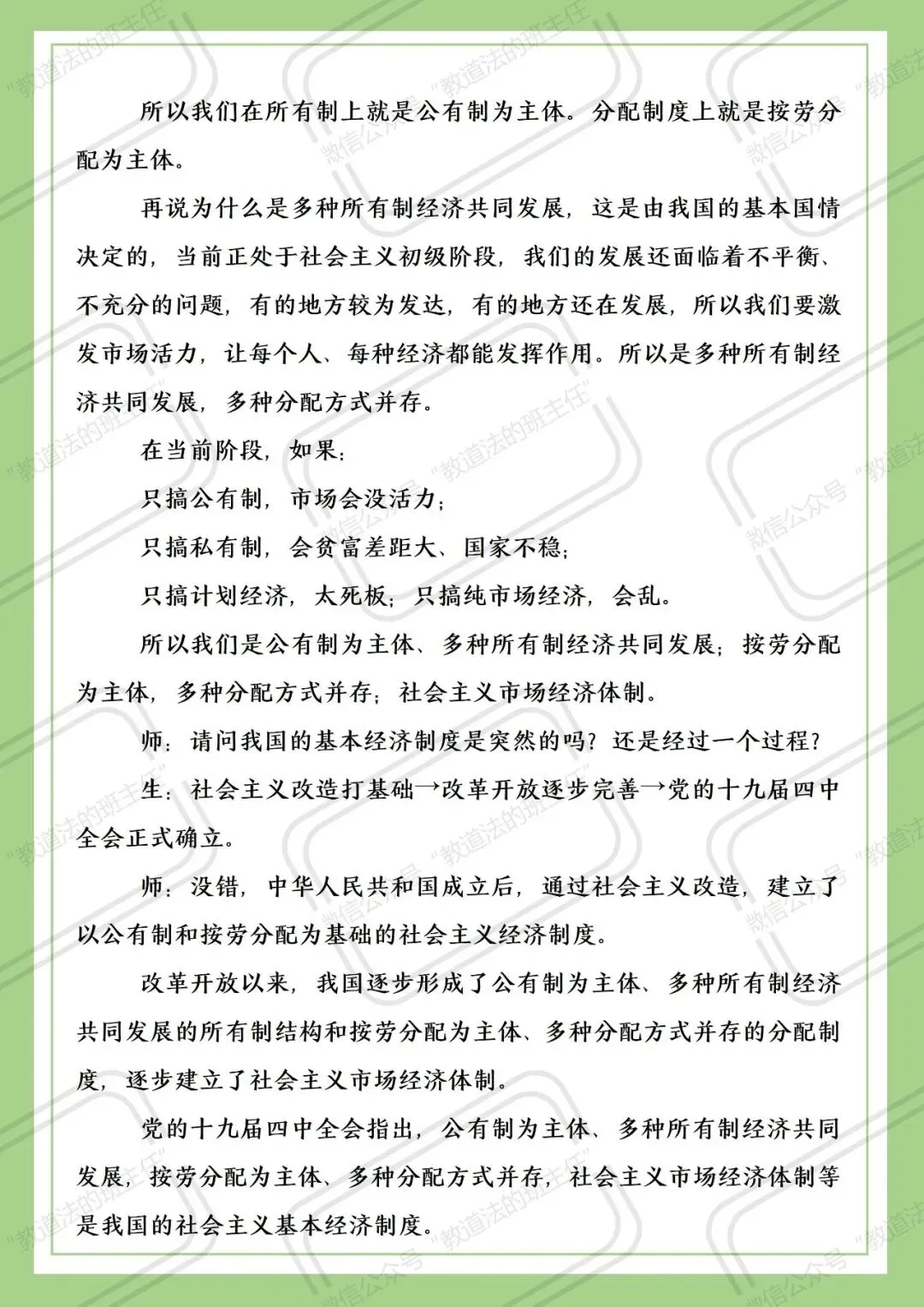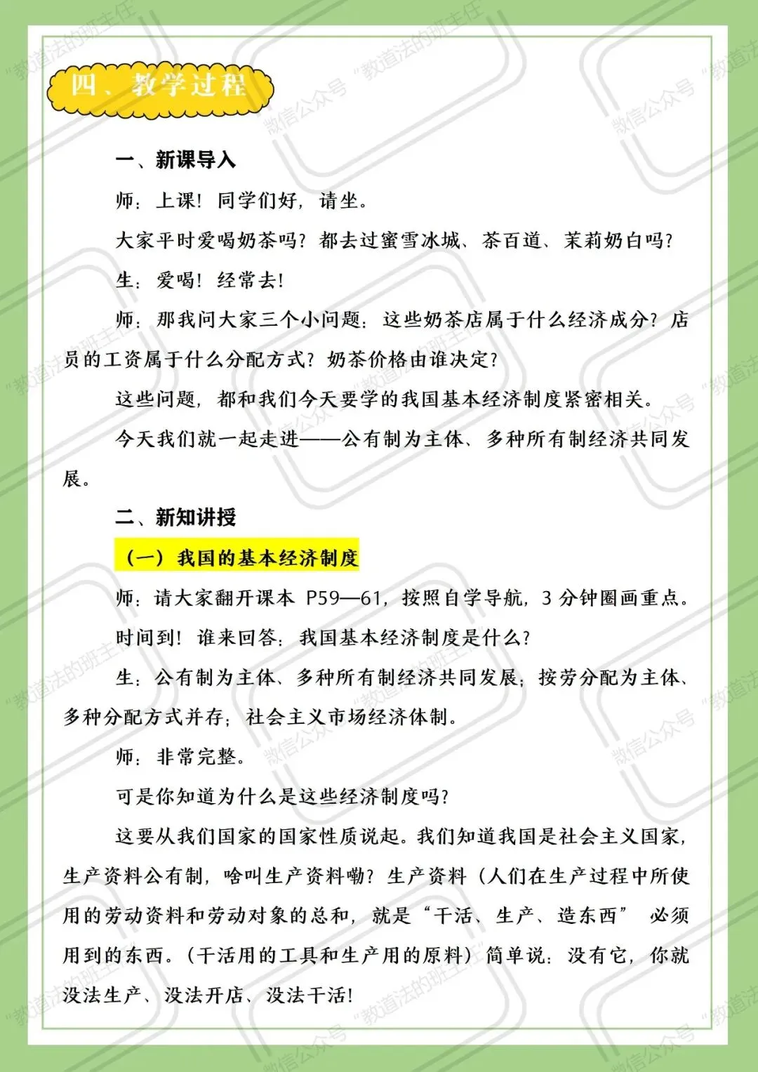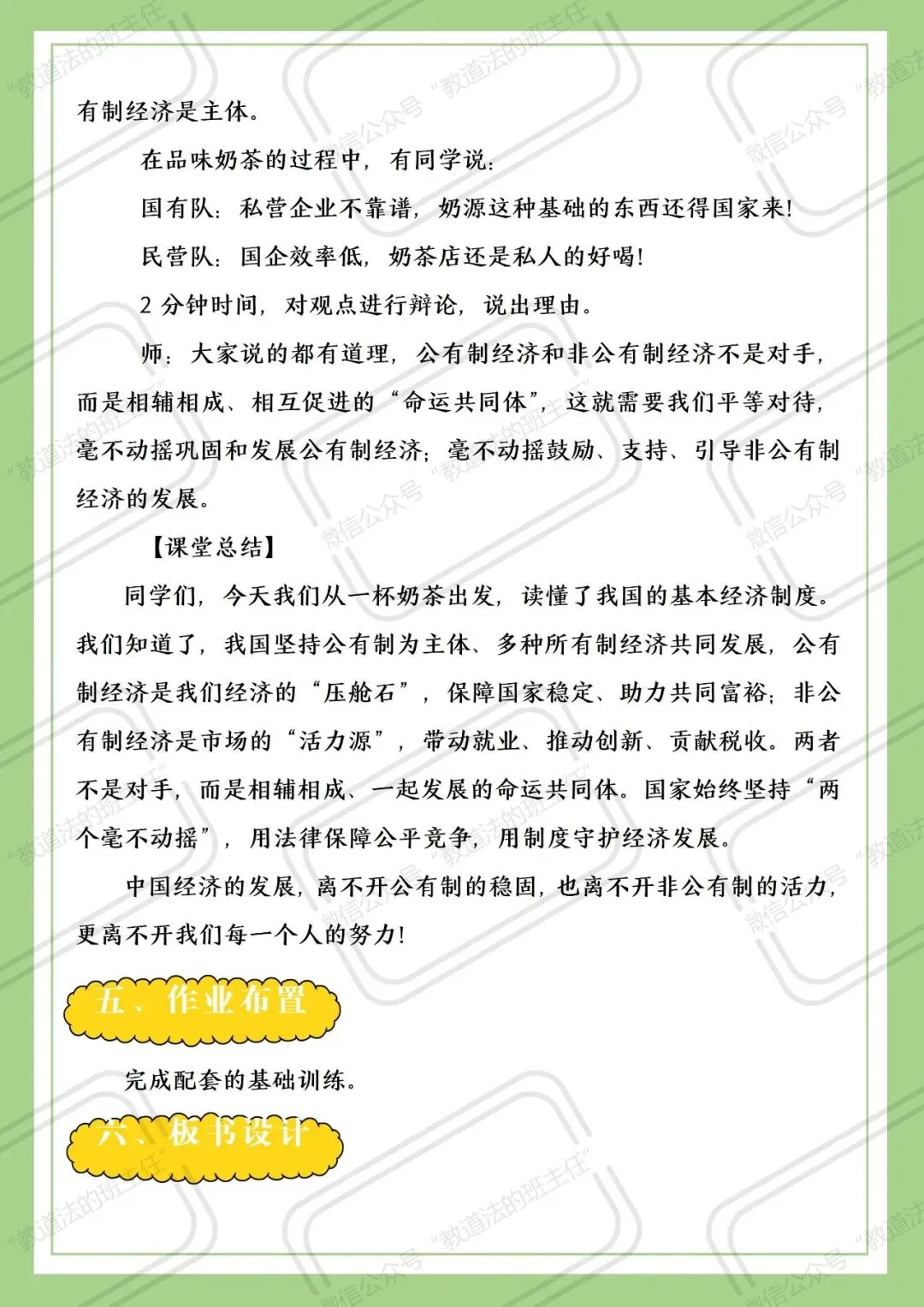 >配套教案|新教材八下道法6.1《公有制为主体、多种所有制经济共同发展》