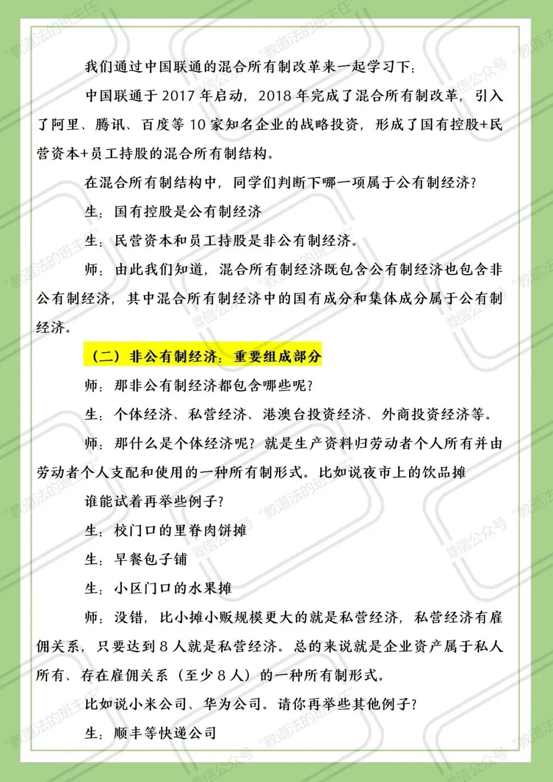 配套教案|新教材八下道法6.1《公有制为主体、多种所有制经济共同发展》