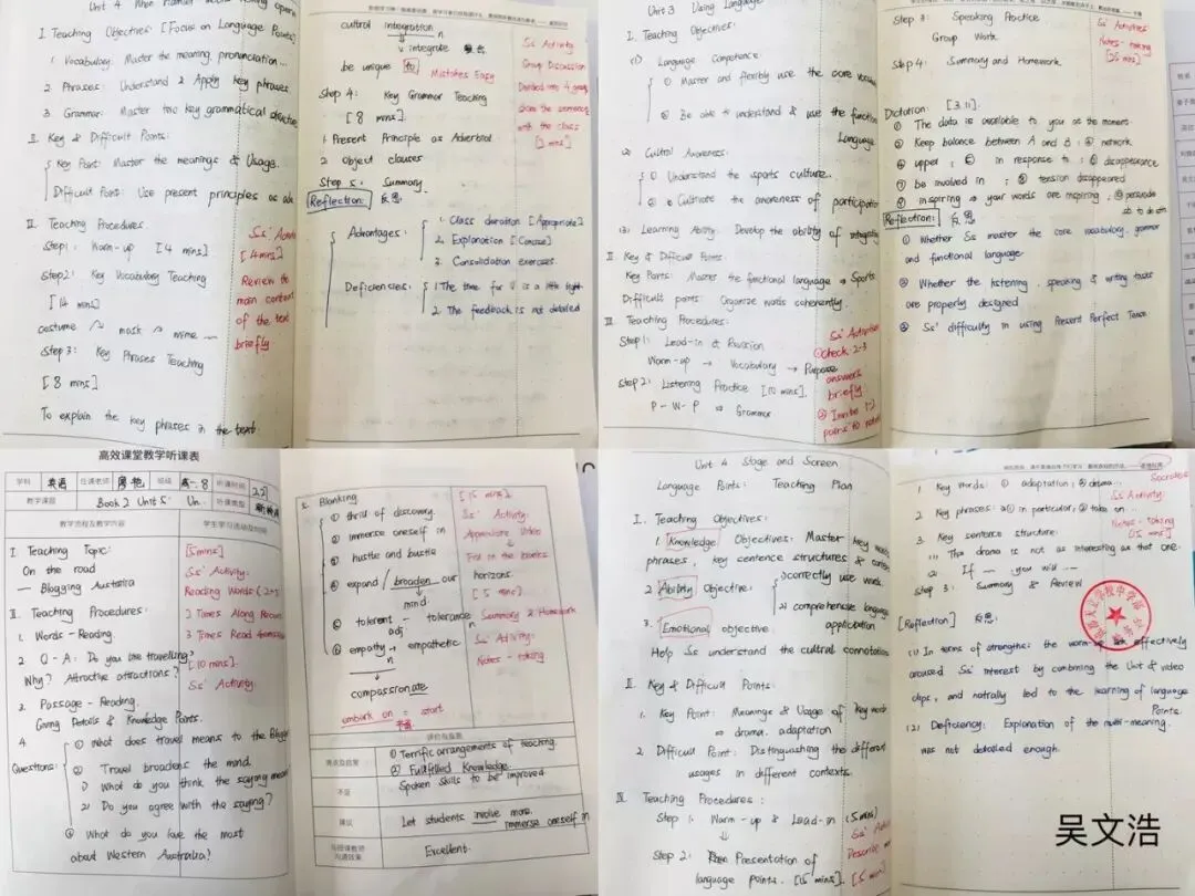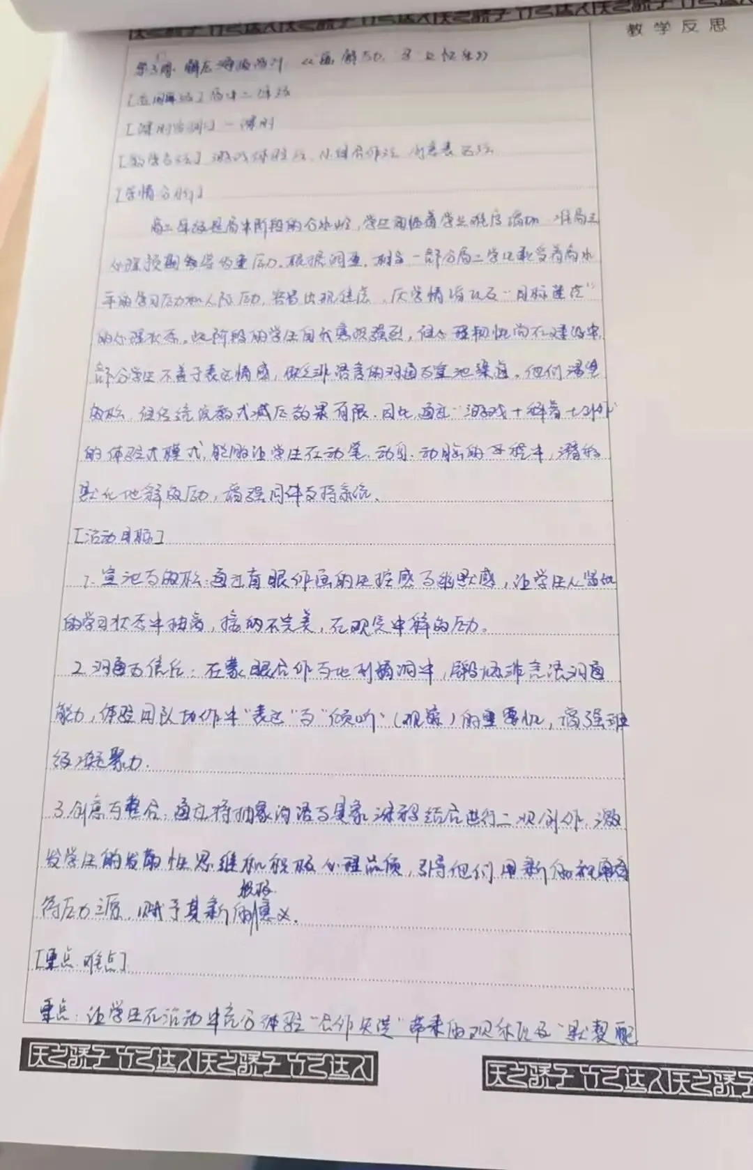 教师们超前备课,教案规范、目标明确。二次备课用红笔批注,充分体现“以生为本”的教学理念。