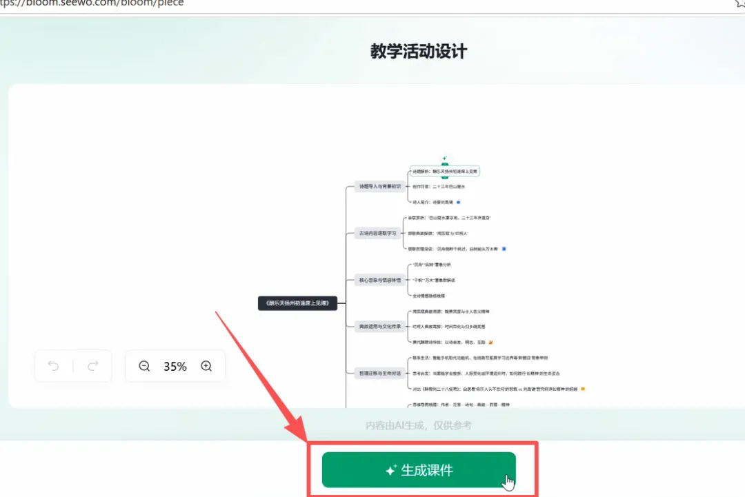 5、生成完教学活动设计,我们点击下方的生成课件按钮,就开始制作课件了,效果很不错。