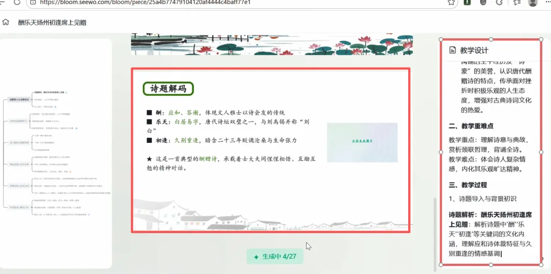 6、生成过程中中间部分是课件,最右侧是教学设计。